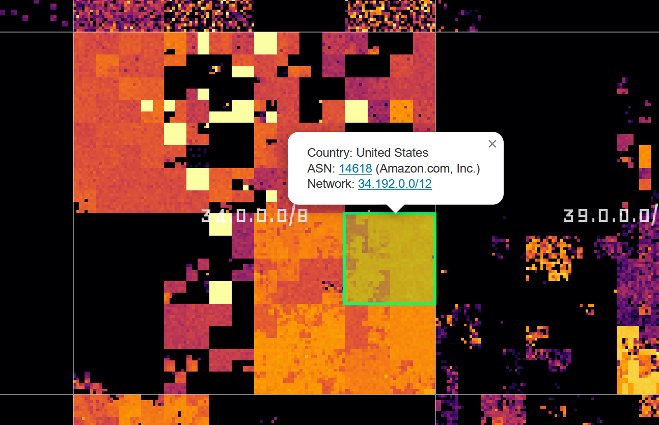 You see: every network covers some space on the entire curve and we can zoom in up until each point on the curve corresponds to a single IPv4 address: